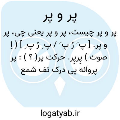 پر و پر. [ پ َ رُ پ َ / پ ِ رُ پ ِ ] ( اِ صوت ) پِرپِر. حرکت پر( ؟ ):