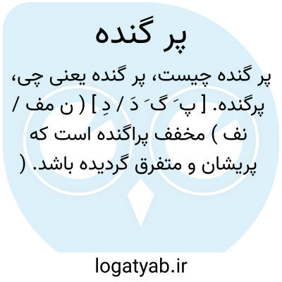 پرگنده. [ پ َ گ َ دَ / دِ ] ( ن مف / نف ) مخفف پراگنده است که پریشان و متفرق گردیده باشد. ( برهان ):