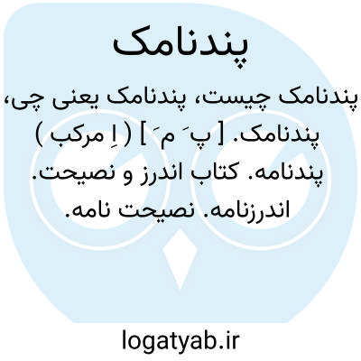 پندنامک. [ پ َ م َ ] ( اِ مرکب ) پندنامه. کتاب اندرز و نصیحت. اندرزنامه. نصیحت نامه.