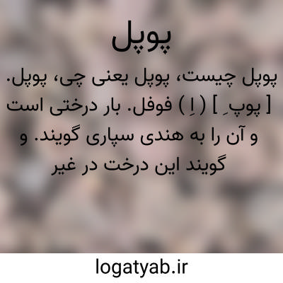 پوپل. [ پوپ ِ ] ( اِ ) فوفل. بار درختی است و آن را به هندی سپاری گویند. و گویند این درخت در غیر هندوستان یافت نشود. رعبة. ( منتهی الارب ). و آن چیزی است شبیه به جوز بوا و در هندوستان با برگ پان خورند. ( آنندراج ). و مقوی دل و اعضاست: