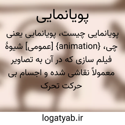 {animation} [عمومی] شیوۀ فیلم سازی که در آن به تصاویر معمولاً نقاشی شده و اجسام بی حرکت تحرک بخشیده شود