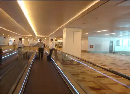{people mover} [حمل ونقل ریلی] وسیله ای در پایانه ها که مانند یک پیاده روِ متحرک مسافران را در مسیر ثابت جابه جا می کند