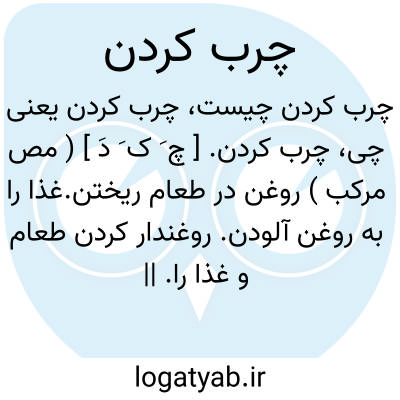 چرب کردن. [ چ َ ک َ دَ ] ( مص مرکب ) روغن در طعام ریختن.غذا را به روغن آلودن. روغندار کردن طعام و غذا را. || روغن مالیدن و اندودن و فرسودن. ( ناظم الاطباء ). چیزی یا جائی را به روغن و چربی آلودن. چرب کردن جائی یا چیزی. روغن مالیدن: و سینه ٔبیمار به روغن گل چرب کنند. ( ذخیره خوارزمشاهی ).