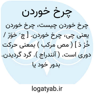 چرخ خوردن. [ چ َ خوَرْ / خُرْ دَ ] ( مص مرکب ) بمعنی حرکت دوری است. ( آنندراج ). گرد گردیدن. بدور خود یا بدور کسی گشتن.