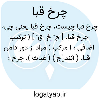 چرخ قبا. [ چ َ خ ِ ق َ ] ( ترکیب اضافی، اِ مرکب ) مراد از دور دامن قبا. ( آنندراج ) ( غیاث ). چرخ: