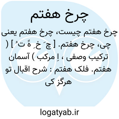 چرخ هفتم. [ چ َ خ ِ هََ ت ُ ] ( ترکیب وصفی، اِ مرکب ) آسمان هفتم. فلک هفتم: