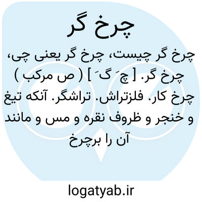چرخ گر. [ چ َ گ َ ] ( ص مرکب ) چرخ کار. فلزتراش. تراشگر. آنکه تیغ و خنجر و ظروف نقره و مس و مانند آن را برچرخ کشد. رجوع به چرخ کار و چرخ کاری و چرخگری شود.