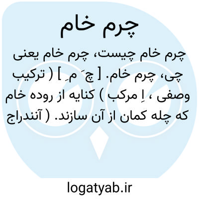 چرم خام. [ چ َ م ِ ] ( ترکیب وصفی، اِ مرکب ) کنایه از روده خام که چله کمان از آن سازند. ( آنندراج ). روده ای که از آن زه کمان سازند. ( ناظم الاطباء ).