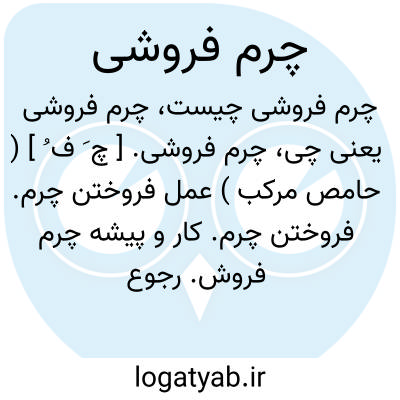 چرم فروشی. [ چ َ ف ُ ] ( حامص مرکب ) عمل فروختن چرم. فروختن چرم. کار و پیشه چرم فروش. رجوع به چرم فروش شود. || ( اِ مرکب ) محل فروش چرم.
