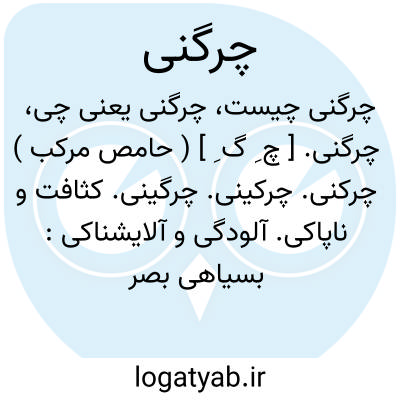 چرگنی. [ چ ِ گ ِ ] ( حامص مرکب ) چرکنی. چرکینی. چرگینی. کثافت و ناپاکی. آلودگی و آلایشناکی: