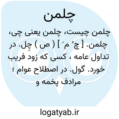 چلمن. [ چ ُ م َ ] ( ص ) چِل. در تداول عامه، کسی که زود فریب خورد. گول. در اصطلاح عوام؛ مرادف پخمه و پپه و پفیوز است. فریب خوار. آنکه به فریب مال وی توان ستد.غَیّی. نادان. سفیه. ابله. هپل هپو. ضعیف عقل. دبنگ. هالو. خل. و رجوع به پخمه و پپه و چل و چلمنی شود.