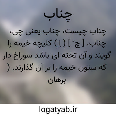 چناب. [ چ َ ] ( اِ ) کلیچه خیمه را گویند و آن تخته ای باشد سوراخ دار که ستون خیمه را بر آن گذارند. ( برهان ). کلیچه خیمه باشد و آنرا بادریسه نیز خوانند. ( جهانگیری ). بادریسه خیمه. ( رشیدی ). کلیچه خیمه و آن تخته سوراخ داری است که ستون خیمه رابدان گذارند و گذرانند. ( از انجمن آرا ) ( از آنندراج ). کلیچه و کماچه خیمه. ( ناظم الاطباء ):
