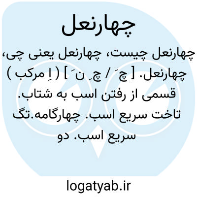 چهارنعل. [ چ َ / چ ِ ن َ ] ( اِ مرکب ) قسمی از رفتن اسب به شتاب. تاخت سریع اسب. چهارگامه.تگ سریع اسب. دو سریع. چهارنعل دو زمان یا سه زمان یا چهار زمان دارد. ولی معمولاً دارای سه زمان است. در زمان اول فقط یک پای خلفی اسب با زمین تماس دارد وسه پای دیگر از زمین بلند میباشد. در زمان دوم اتکاء پای اول تمام شده و حیوان اتکاء قطری پیدا میکند. در زمان سوم اتکاء قطری تمام میشود و اتکاء حیوان روی یک پای قدامی میافتد. پس از گذشت این سه زمان حیوان در فضا رها شده و به زمین میرسد. زمانهای سه گانه به تناوب باز از سر گرفته میشود آخرین پای طرفی که به زمین اصابت میکند چهارنعل را بدان طرف منسوب میدارند. از این رو چهارنعل را میتوان چهارنعل به راست یا چهارنعل به چپ نامید. مثلاً در چهارنعل به راست اولین اتکاء بر پای خلفی چپ میباشد. و بعد اتکاء قطری چپ است سپس اتکاء قدامی راست صورت میگیرد و در چهارنعل به چپ از اتکاء پای خلفی راست شروع شده و به اتکاء پای قدامی چپ تمام میشود. ( از کالبدشناسی هنری تألیف نعمت اﷲ کیهان صص 181 - 180 ). رجوع به چارنعل شود.