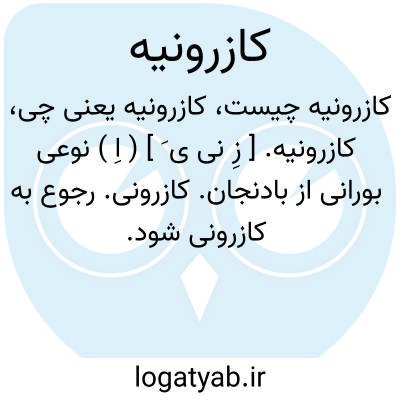 کازرونیه. [ زِ نی ی َ ] ( اِ ) نوعی بورانی از بادنجان. کازرونی. رجوع به کازرونی شود.