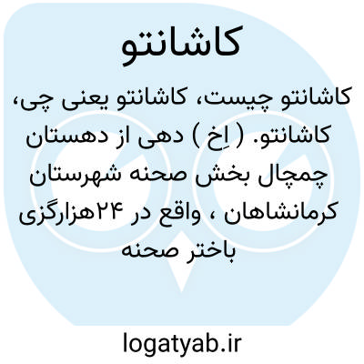 کاشانتو. ( اِخ ) دهی از دهستان چمچال بخش صحنه شهرستان کرمانشاهان، واقع در 24هزارگزی باختر صحنه و 2هزارگزی خاور شوسه کرمانشاه به سنقر. دشت و سرد و معتدل،سکنه آن 360 تن است. آب از رودخانه دینور دارد. محصول آن غلات و تریاک و برنج و حبوبات و توتون و شغل اهالی زراعت است. راه مالرو دارد. از طریق نادری اتومبیل میتوان برد. محمودآباد، مالمیری، تازه آباد جزء این آبادی منظور شد. ( فرهنگ جغرافیایی ایران ج 5 ).