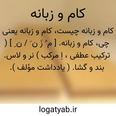 کام و زبانه. [ م ُ زَ ن َ / ن ِ ] ( ترکیب عطفی، اِ مرکب ) نر و لاس. بند و گشا. ( یادداشت مؤلف ). در اصطلاح نجاران فرورفتگی در چوب که با اسکنه پیدا آید و برآمدگی که در چوب دیگر پیدا آید و با قرار دادن زبانه درون کام آن دو چوب بهم اتصال یابد.