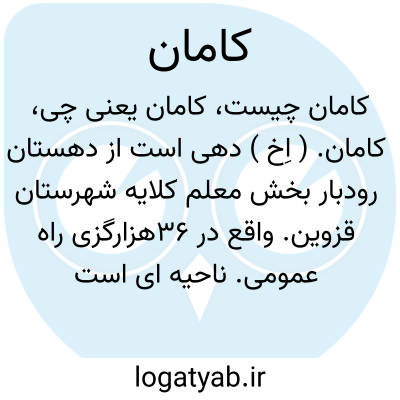 کامان. ( اِخ ) دهی است از دهستان رودبار بخش معلم کلایه شهرستان قزوین. واقع در 36هزارگزی راه عمومی. ناحیه ای است کوهستانی سردسیر. دارای 250 تن سکنه میباشد. از چشمه سار مشروب میشود محصولاتش: غلات، لوبیا، نخود. اهالی به کشاورزی، کرباس و جوال بافی مشغولند. معدن ذغال سنگ دارد. راه آن مالرو است. ( از فرهنگ جغرافیائی ایران ج 1 ).
