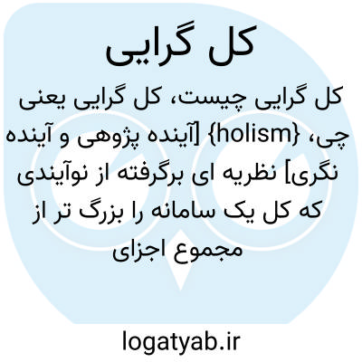 {holism} [آینده پژوهی و آینده نگری] نظریه ای برگرفته از نوآیندی که کل یک سامانه را بزرگ تر از مجموع اجزای تشکیل دهنده اش در نظر می گیرد