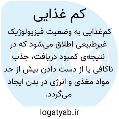 {undernutrition} [تغذیه] هرگونه وضعیتی که باعث شود نیاز بدن به مواد مغذی و انرژی برآورده نشود