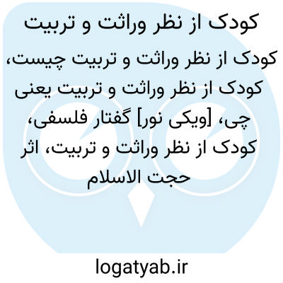 [ویکی نور] گفتار فلسفی، کودک از نظر وراثت و تربیت، اثر حجت الاسلام محمدتقی فلسفی، بررسی نقش وراثت و تربیت، در شخصیت کودک و سعادت و شقاوت وی می باشد که به زبان فارسی و در سال 1381ش تدوین شده است.