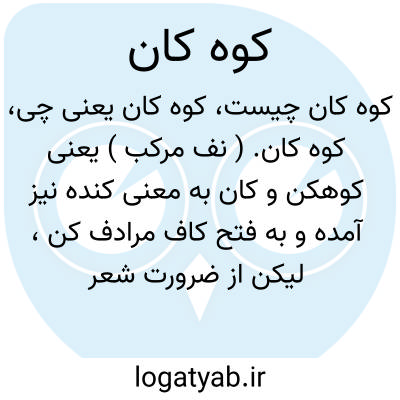 کوه کان. ( نف مرکب ) یعنی کوهکن و کان به معنی کنده نیز آمده و به فتح کاف مرادف کن، لیکن از ضرورت شعر است. ( آنندراج ). کوهکن. کهکان. ( فرهنگ فارسی معین ):