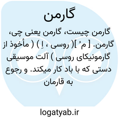 گارمن. [ م ُ ]( روسی، اِ ) ( مأخوذ از گارمونیکای روسی ) آلت موسیقی دستی که با باد کار میکند. و رجوع به قارمان شود.