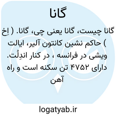 گانا. ( اِخ ) حاکم نشین کانتون آلیر، ایالت ویشی در فرانسه، در کنار اندِلُت. دارای 4752 تن سکنه است و راه آهن دارد.