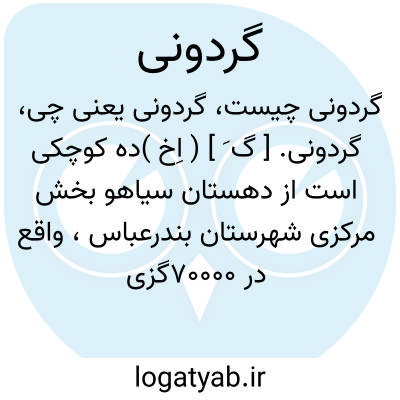 گردونی. [ گ َ ] ( اِخ )ده کوچکی است از دهستان سیاهو بخش مرکزی شهرستان بندرعباس، واقع در 70000گزی شمال خاوری بندرعباس، سر راه مالرو سیاهو به قلعه قاضی. هوای آن گرمسیر و دارای 30 تن سکنه است. ( از فرهنگ جغرافیایی ایران ج 8 ).