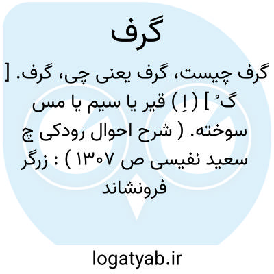 گرف. [ گ ُ ] ( اِ ) قیر یا سیم یا مس سوخته. ( شرح احوال رودکی چ سعید نفیسی ص 1307 ):
