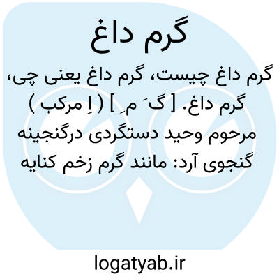 گرم داغ. [ گ َ م ِ ] ( اِ مرکب ) مرحوم وحید دستگردی درگنجینه گنجوی آرد: مانند گرم زخم کنایه از اشتیاق مفرط است که بدان سبب از داغ بی خبر است: