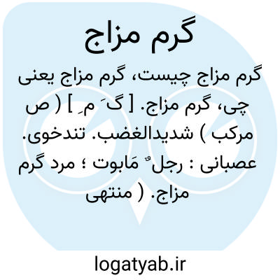۱ - تند خوی عصبانی. ۲ - آنکه دارای طبعی حاراست محرور مقابل سرد مزاج: مردم گرم مزاج را بخوردن این شراب با آب و گلاب ممزوج کنند...