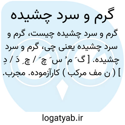 گرم و سرد چشیده. [ گ َ م ُ س َ چ َ / چ ِ دَ / دِ ] ( ن مف مرکب ) کارآزموده. مجرب. جهاندیده: در خدمت وی گرم و سرد چشیده. ( تاریخ بیهقی ). پرورده جهان دیده آرمیده گرم و سرد چشیده. ( گلستان ).