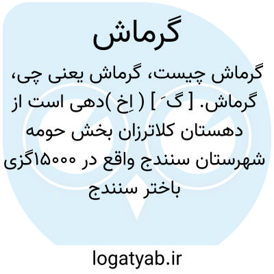 گرماش. [ گ َ ] ( اِخ )دهی است از دهستان کلاترزان بخش حومه شهرستان سنندج واقع در 15000گزی باختر سنندج و 4000گزی جنوب شوسه ٔسنندج به مریوان. هوای آن سرد. دارای 480 تن سکنه است. آب آنجا از چشمه و رودخانه محلی تأمین میشود. محصول آن غلات و صیفی و توتون و حبوبات جالیز و لبنیات است. شغل اهالی زراعت و گله داری و راه آن مالرو است. مسجد هم دارد. ( از فرهنگ جغرافیایی ایران ج 5 ).