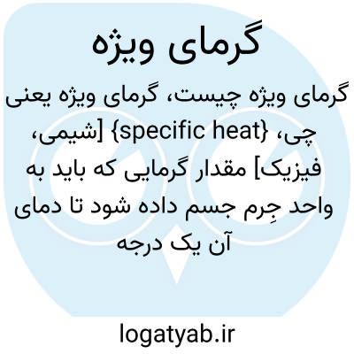 {specific heat} [شیمی، فیزیک] مقدار گرمایی که باید به واحد جِرم جسم داده شود تا دمای آن یک درجه بالا رود
