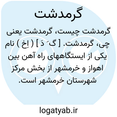 گرمدشت. [ گ َ دَ ] ( اِخ ) نام یکی از ایستگاههای راه آهن بین اهواز و خرمشهر از بخش مرکز شهرستان خرمشهر است. این ایستگاه در 101 هزارگزی جنوب باختری اهواز و 20 هزارگزی شمال خرمشهر واقع، ساکنین آن عبارتند از کارمندان راه آهن. ( از فرهنگ جغرافیایی ایران ج 6 ).