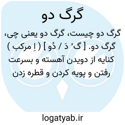 گرگ دو. [ گ ُ دَ / دُو ] ( اِ مرکب ) کنایه از دویدن آهسته و بسرعت رفتن و پویه کردن و قطره زدن باشد و به عربی هروله گویند. ( برهان ). گرگ پوی. گرگ تاز: