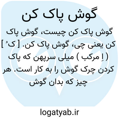 گوش پاک کن. [ ک ُ ] ( اِ مرکب ) میلی سرپهن که پاک کردن چرک گوش را به کار است. هر چیز که بدان گوش را پاک کنند. میله باریک پلاستیکی که دو سر آن پنبه دارد و گوش را بدان پاک می کنند.