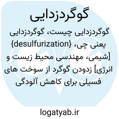 {desulfurization} [شیمی، مهندسی محیط زیست و انرژی] زدودن گوگرد از سوخت های فسیلی برای کاهش آلودگی