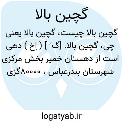 گچین بالا. [گ َ ] ( اِخ ) دهی است از دهستان خمیر بخش مرکزی شهرستان بندرعباس، 80000گزی باختر بندرعباس، سر راه فرعی خمیر به بندرعباس. جلگه، گرمسیری و سکنه آن 835 تن.آب آن از چاه. محصول آن خرما و شغل اهالی زراعت است. راه فرعی دارد. ( از فرهنگ جغرافیایی ایران ج 8 ).