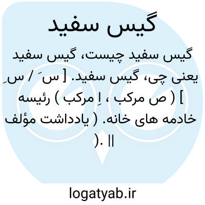 گیس سفید. [ س َ / س ِ ] ( ص مرکب، اِ مرکب ) رئیسه خادمه های خانه. ( یادداشت مؤلف ). || خانمی محترمه و بزرگسال مانند ریش سفید. ( از یادداشت مؤلف ). بانویی سالخورد که در جمع زنان خویشاوند فرمانش نافذ باشد و درمشکلات با وی رجوع کنند و به صوابدید او کار کنند.