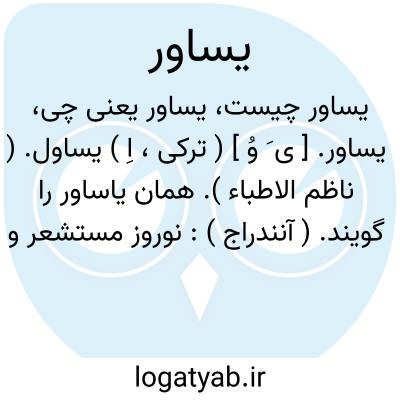 یساور. [ ی َ وُ ] ( ترکی، اِ ) یساول. ( ناظم الاطباء ). همان یاساور را گویند. ( آنندراج ): نوروز مستشعر و منهزم شد با لشکر خود بر یساور زد و گروهی را هلاک کرد. ( تاریخ غازانی ص 51 ). و رجوع به یساول شود.
