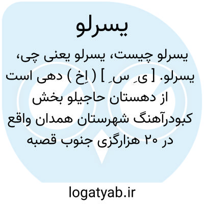 یسرلو. [ ی ِ س ِ ] ( اِخ ) دهی است از دهستان حاجیلو بخش کبودرآهنگ شهرستان همدان واقع در 20 هزارگزی جنوب قصبه کبودرآهنگ، کنار راه اتومبیل رو شراء. دارای 375 تن سکنه و آب آن از قنات و راه آن مالرو است. ( از فرهنگ جغرافیایی ایران ج 5 ).