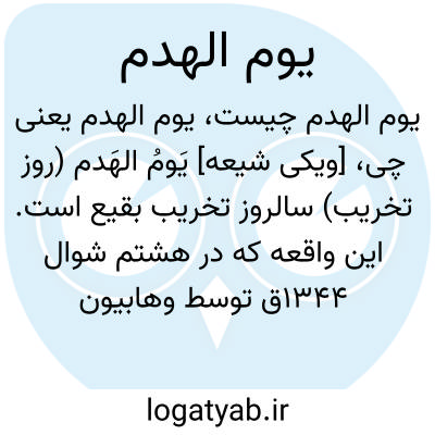 [ویکی شیعه] یَومُ الهَدم (روز تخریب) سالروز تخریب بقیع است. این واقعه که در هشتم شوال ۱۳۴۴ق توسط وهابیون صورت گرفت، باعث تخریب قبور ائمه بقیع (ع) و دیگر بقعه های بقیع شد.