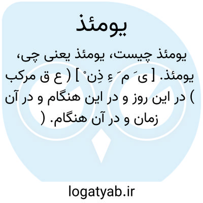 یومئذ. [ ی َ م َ ءِ ذِن ْ ] ( ع ق مرکب ) در این روز و در این هنگام و در آن زمان و در آن هنگام. ( ناظم الاطباء ).به معنی امروز است. ( آنندراج ). آن روز. ( مهذب الاسماء ). آن روز و در آن روز. ( دهار ). و رجوع به یوم شود.