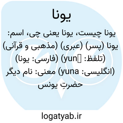 اسم: یونا (پسر) (عبری) (مذهبی و قرآنی) (تلفظ: yunā) (فارسی: يونا) (انگلیسی: yuna)