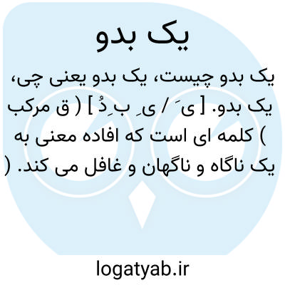 یک بدو. [ ی َ / ی ِ ب ِدُ ] ( ق مرکب ) کلمه ای است که افاده معنی به یک ناگاه و ناگهان و غافل می کند. ( برهان ) ( آنندراج ). یک دفعه.یک بارگی. بی خبر. ناگاه. ( ناظم الاطباء ). در تداول عوام به معنی ناگهان و بی مقدمه است و در قدیم این را یکایک و یک به یک می گفته اند. ( یادداشت مؤلف ). رجوع به یکایک و یک به یک شود. || ( اِ مرکب ) مکابره.