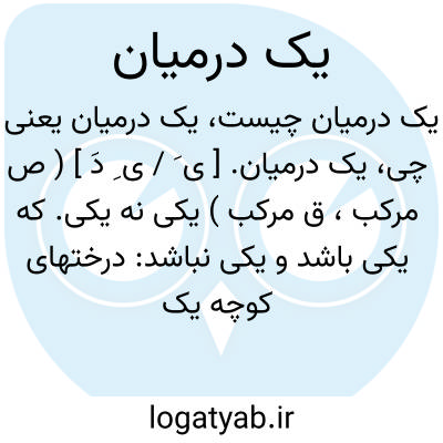 یک درمیان. [ ی َ / ی ِ دَ ] ( ص مرکب، ق مرکب ) یکی نه یکی. که یکی باشد و یکی نباشد: درختهای کوچه یک درمیان خشکیده اند.