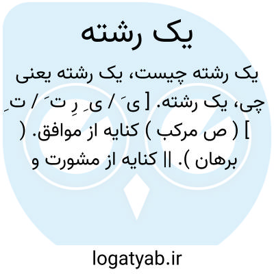 یک رشته. [ ی َ / ی ِ رِ ت َ / ت ِ ] ( ص مرکب ) کنایه از موافق. ( برهان ). || کنایه از مشورت و موافقت. ( آنندراج ) ( انجمن آرا ). || کنایه از متفق هم هست. ( برهان ). || منتظم: