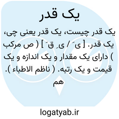یک قدر. [ ی َ / ی ِ ق َ ] ( ص مرکب ) دارای یک مقدار و یک اندازه و یک قیمت و یک رتبه. ( ناظم الاطباء ). هم قدر. هم اندازه. || ( ق مرکب ) یک قدری. کمی و اندکی. ( ناظم الاطباء ). مقداری.
