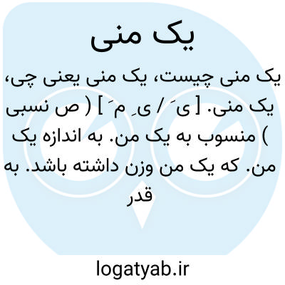 یک منی. [ ی َ / ی ِ م َ ] ( ص نسبی ) منسوب به یک من. به اندازه یک من. که یک من وزن داشته باشد. به قدر یک من. یک منه. ( یادداشت مؤلف ):